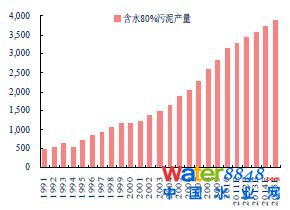 圖1:91~15 年我國(guó)濕污泥產(chǎn)生量 (萬(wàn)噸)。