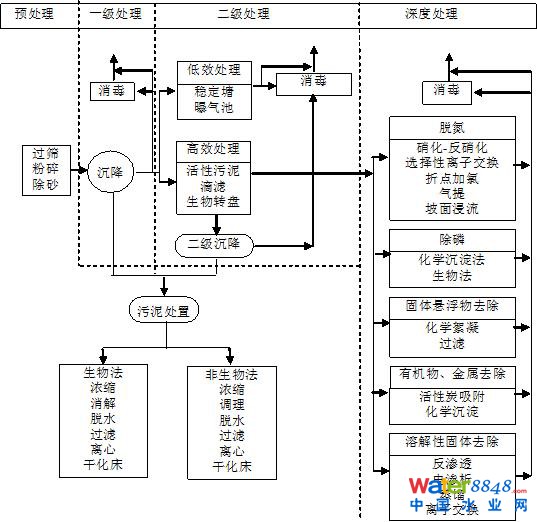 城市污水再生處理一般可分為預(yù)處理、一級處理、二級處理和深度處理