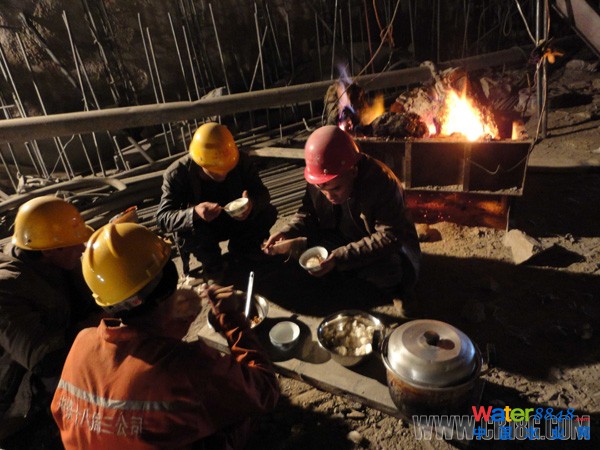 9、十八局集團(tuán)三公司花久公路HD5標(biāo)職工在隧道里吃午飯(伍振 江懷港 攝)