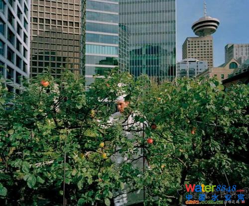 廚師長(zhǎng)正在摩天大樓屋頂花園采摘蘋(píng)果,據(jù)酒店會(huì)計(jì)透露:這個(gè)屋頂花園每年生產(chǎn)的水果,蔬菜,草藥,蜂蜜,總價(jià)值約達(dá)16,000美元。
