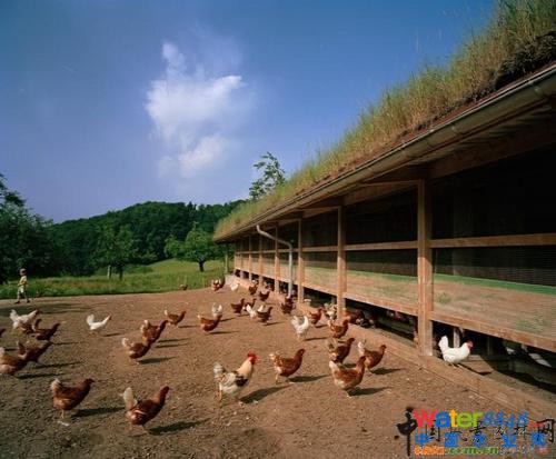 瑞士農(nóng)民馬塞厄斯· 埃格琳打算為雞場(chǎng)搭建一個(gè)新窩棚,他在棚頂種植了一塊草地代替了遮蔭棚。和臨國(guó)德國(guó)一樣,瑞士已建立健全法規(guī)保護(hù)綠地,建造綠色草皮屋頂成為符合環(huán)保標(biāo)準(zhǔn)的一項(xiàng)常規(guī)策略。