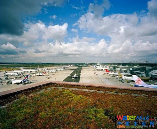 法蘭克福國(guó)際機(jī)場(chǎng)是德國(guó)最繁忙的機(jī)場(chǎng),自1990年至今,屋頂已經(jīng)堆聚了將近50萬(wàn)平方英尺的枝葉。機(jī)場(chǎng)20多個(gè)綠色屋頂不僅有助于減弱飛機(jī)噪聲,植物蔭蔽下的屋頂建筑的使用壽命也增加了一倍。