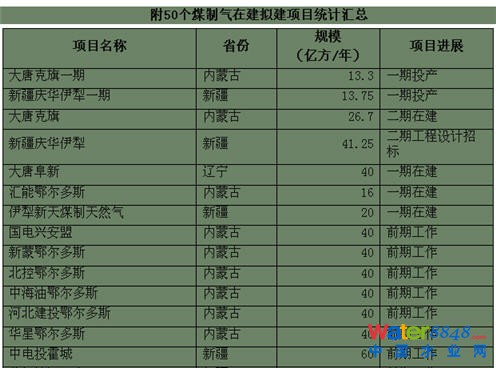 經(jīng)統(tǒng)計,全國目前共有不同階段煤制氣項目50個,其中實際建設中項目5個(部分產(chǎn)能已投產(chǎn)),正在做前期工作的項目16個,計劃中的項目18個,另有2013年以來新簽約的11個項目。