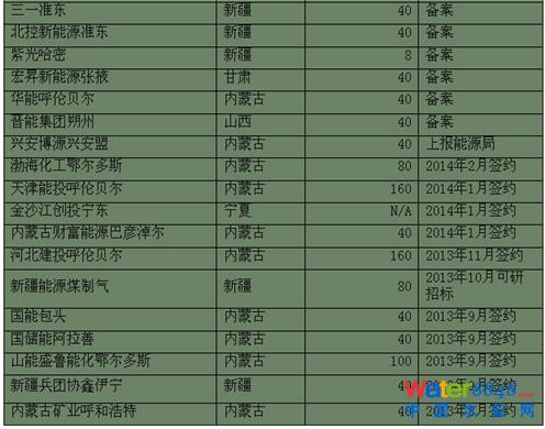 2013年項目審批的提速刺激了煤制氣項目的投資,2013年8月到2014年2月僅僅7個月內(nèi),就有11家企業(yè)與地方政府簽訂項目投資合同,計劃項目總產(chǎn)能達到780億立方米/年。