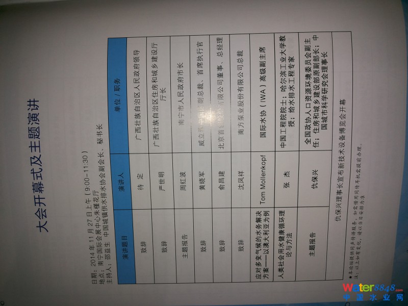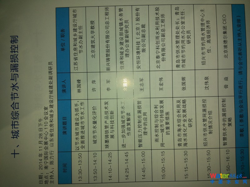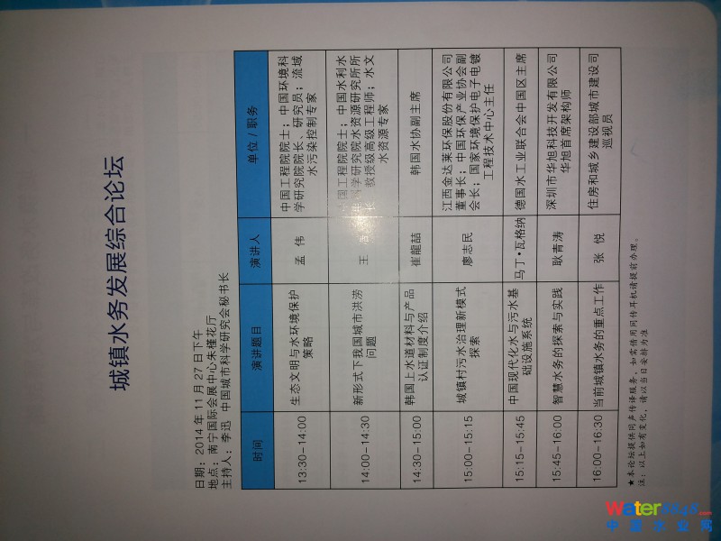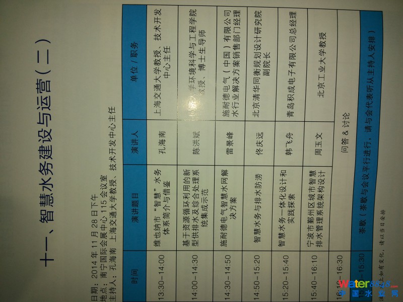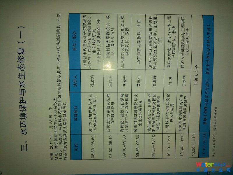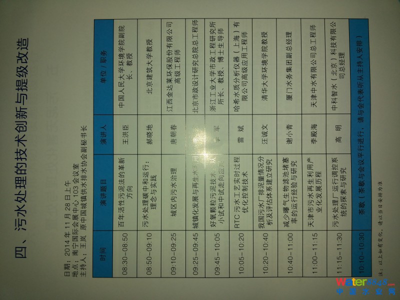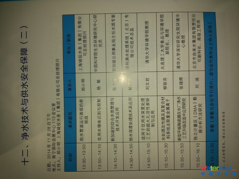 2014 水大會(huì)專家報(bào)告日程 (全) 中國(guó)給水排水戰(zhàn)略聯(lián)盟