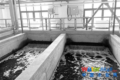 北京經濟技術開發(fā)區(qū)污水再生處理廠濾布濾池正在處理泛黃的污水。