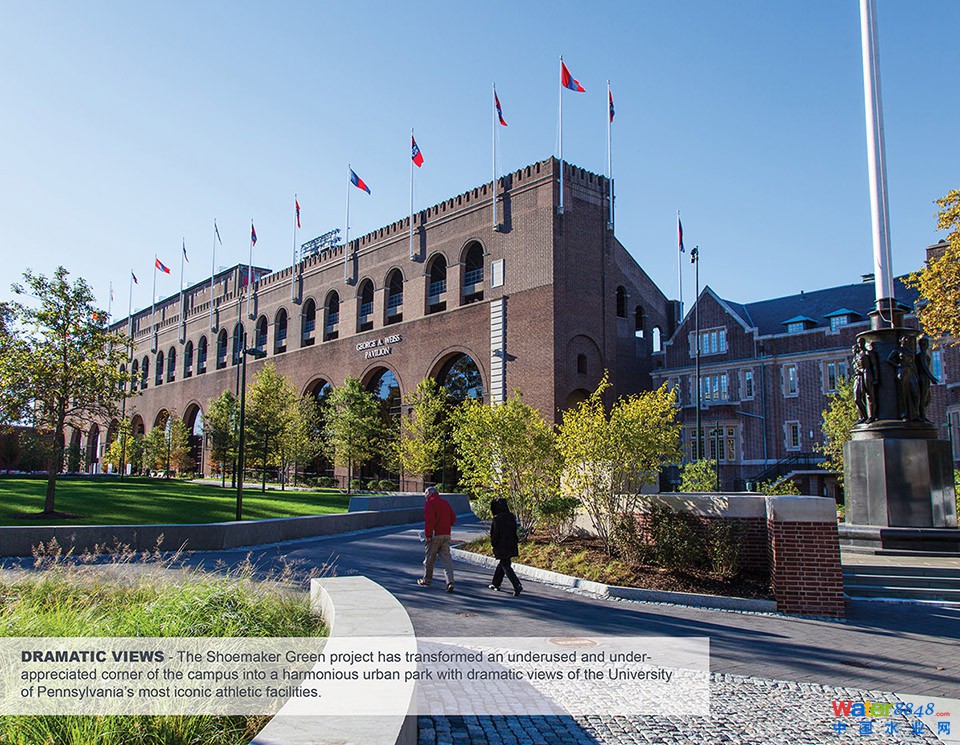 休梅克綠地項目將校園內(nèi)一處未得到充分利用的荒廢角落改造成和諧嫻靜的都市公園,在賓夕法尼亞大學(xué)最具標(biāo)志性的運動設(shè)施襯托下形成了優(yōu)美的景致。