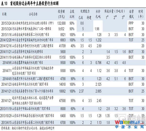 2015年4月的《水污染防治行動計劃》的10項措施,包括全面控制污染物排放、提高科學及技術(shù)支持及全面利用市場主導制度。該等條文旨在協(xié)助水務企業(yè)嚴格控制排放標準、引入先進技術(shù)并推廣多元投資,包括引入社會資金、增加政府撥款。行業(yè)標準更趨嚴謹、技術(shù)的提升及經(jīng)擴展的投票規(guī)模,預期中國水行業(yè)的未來發(fā)展將會有新機遇。