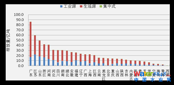 圖2-3 各地區(qū)氨氮排放情況