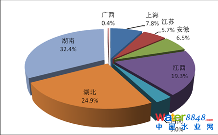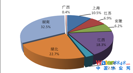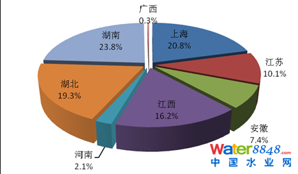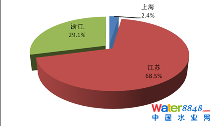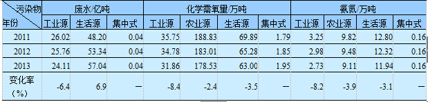 2013年,太湖流域廢水、化學(xué)需氧量和氨氮排放量最大的均是江蘇省,分別占該流域各類(lèi)污染物排放量的68.5%、52.7%和49.8%。其中,工業(yè)廢水、化學(xué)需氧量和氨氮排放量最大的均是江蘇省,分別占該流域工業(yè)排放總量的72.5%、65.0%和54.0%。農(nóng)業(yè)化學(xué)需氧量和氨氮排放量最大的均是浙江省,分別占該流域農(nóng)業(yè)排放總量的53.9%和56.8%。城鎮(zhèn)生活廢水、化學(xué)需氧量和氨氮排放量最大的均是江蘇省,分別占該流域生活排放總量的65.9%、50.5%和51.8%。