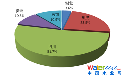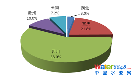 2013年,三峽庫(kù)區(qū)及其上游流域廢水、化學(xué)需氧量和氨氮排放量最大的均是四川省,分別占該流域各類(lèi)污染物排放量的51.7%、62.3%和58.0%。其中,工業(yè)廢水、化學(xué)需氧量和氨氮排放量最大的均是四川省,分別占該流域工業(yè)排放總量的49.5%、49.0%和41.4%。農(nóng)業(yè)化學(xué)需氧量和氨氮排放量最大的均是四川省,分別占該流域農(nóng)業(yè)排放總量的73.3%和71.0%。城鎮(zhèn)生活廢水、化學(xué)需氧量和氨氮排放量最大的均是四川省,分別占該流域生活排放總量的52.4%、57.8%和52.5%。
