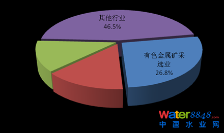 2013年,在調(diào)查統(tǒng)計(jì)的41個(gè)工業(yè)行業(yè)中,丹江口庫(kù)區(qū)及其上游流域廢水排放量位于前3位的行業(yè)依次為有色金屬礦采選業(yè)、化學(xué)原料和化學(xué)制品制造業(yè)、造紙和紙制品業(yè),3個(gè)行業(yè)的廢水排放量為0.5億噸,占重點(diǎn)調(diào)查工業(yè)企業(yè)廢水排放總量的53.5%。