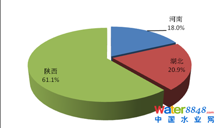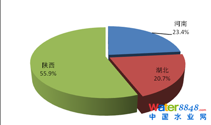 2013年,丹江口庫(kù)區(qū)及其上游流域廢水、化學(xué)需氧量和氨氮排放量最大的均是陜西省,分別占該流域各類(lèi)污染物排放量的44.6%、55.9%和61.1%。其中,工業(yè)廢水、化學(xué)需氧量和氨氮排放量最大的均是陜西省,分別占該流域工業(yè)排放總量的45.3%、50.2%和69.1%。農(nóng)業(yè)化學(xué)需氧量和氨氮排放量最大的均是陜西省,分別占該流域農(nóng)業(yè)排放總量的54.3%和67.4%。城鎮(zhèn)生活廢水、化學(xué)需氧量和氨氮排放量最大的均是陜西省,分別占該流域生活排放總量的44.3%、58.5%和54.6%。