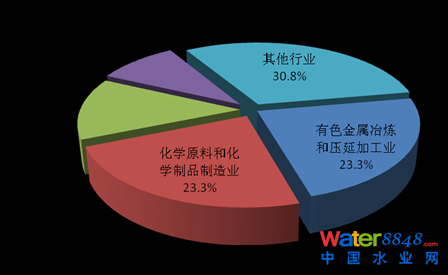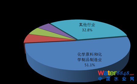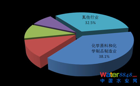 2013年,在調(diào)查統(tǒng)計(jì)的41個(gè)工業(yè)行業(yè)中,長(zhǎng)江中下游流域氨氮排放量位于前4位的行業(yè)依次為化學(xué)原料和化學(xué)制品制造業(yè),造紙和紙制品業(yè),有色金屬冶煉和壓延加工業(yè),石油加工、煉焦和核燃料加工業(yè),4個(gè)行業(yè)的氨氮排放量為3.2萬(wàn)噸,占重點(diǎn)調(diào)查工業(yè)企業(yè)氨氮排放總量的67.2%。