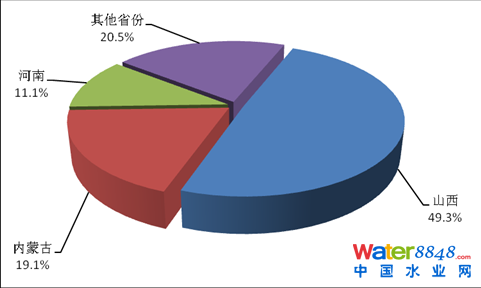 煤炭開(kāi)采和洗選業(yè)廢水排放量前5位的省份依次是河南、山東、山西、貴州和黑龍江,5個(gè)省份煤炭開(kāi)采和洗選業(yè)廢水排放量為7.7億噸,占該行業(yè)重點(diǎn)調(diào)查工業(yè)企業(yè)廢水排放量的53.6%。