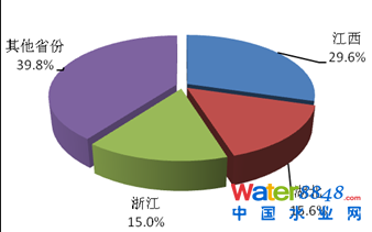 工業(yè)廢水中六價(jià)鉻排放量前3位的省份依次為江西、湖北和浙江,3個(gè)省份工業(yè)廢水六價(jià)鉻排放量為35.0噸,占全國(guó)廢水六價(jià)鉻排放量的60.2%。