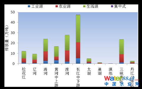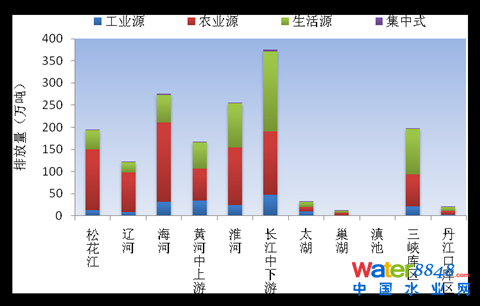 三峽庫(kù)區(qū)及其上游流域共排放廢水59.5億噸,其中,工業(yè)廢水13.1億噸,城鎮(zhèn)生活污水46.3億噸;瘜W(xué)需氧量排放量為197.7萬(wàn)噸,其中,工業(yè)化學(xué)需氧量為21.7萬(wàn)噸,農(nóng)業(yè)化學(xué)需氧量72.1萬(wàn)噸,城鎮(zhèn)生活化學(xué)需氧量102.4萬(wàn)噸。氨氮排放量為23.6萬(wàn)噸。其中,工業(yè)氨氮為1.2萬(wàn)噸,農(nóng)業(yè)氨氮7.9萬(wàn)噸,城鎮(zhèn)生活氨氮14.4萬(wàn)噸。