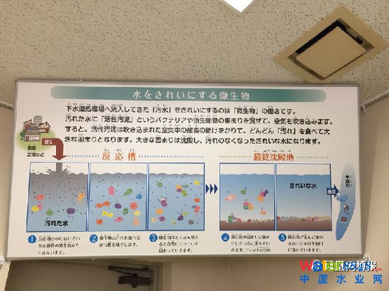 工作人員介紹說,這里是對(duì)社會(huì)開放的,每年都有很多長(zhǎng)野縣內(nèi)的小學(xué)生來此參觀,為了解與自己日常生活息息相關(guān)的污水是如何處理排放的。講解的內(nèi)容用大紙板寫出,瓶子裝著樣品,供人仔細(xì)察看,顯微鏡也可以隨意觀察。