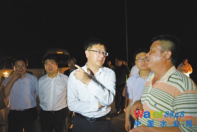 8月16日晚,環(huán)境保護部部長陳吉寧、副部長翟青,天津市副市長王宏江查看天津濱海新區(qū)天津港保稅區(qū)擴展區(qū)污水處理廠。本報記者郭文生攝