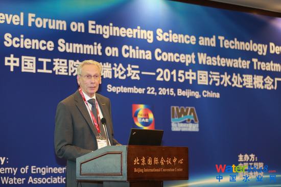 水是生命的源泉,是社會經(jīng)濟發(fā)展的命脈,是人類最為寶貴并不可替代的自然資源。隨著人類認識與社會發(fā)展的進步,污水處理事業(yè)的內(nèi)涵也在不斷延展,污水處理正處于重大變革的前夜。2015年9月22日,由中國工程院、國際水協(xié)會、中科院生態(tài)環(huán)境研究中心、中國城市污水處理概念廠專家委員會在北京國際會議中心聯(lián)合舉辦了2015中國污水處理概念廠高端論壇,探討如何在污水處理廠的設計和運行中實踐可持續(xù)發(fā)展的全新理念。