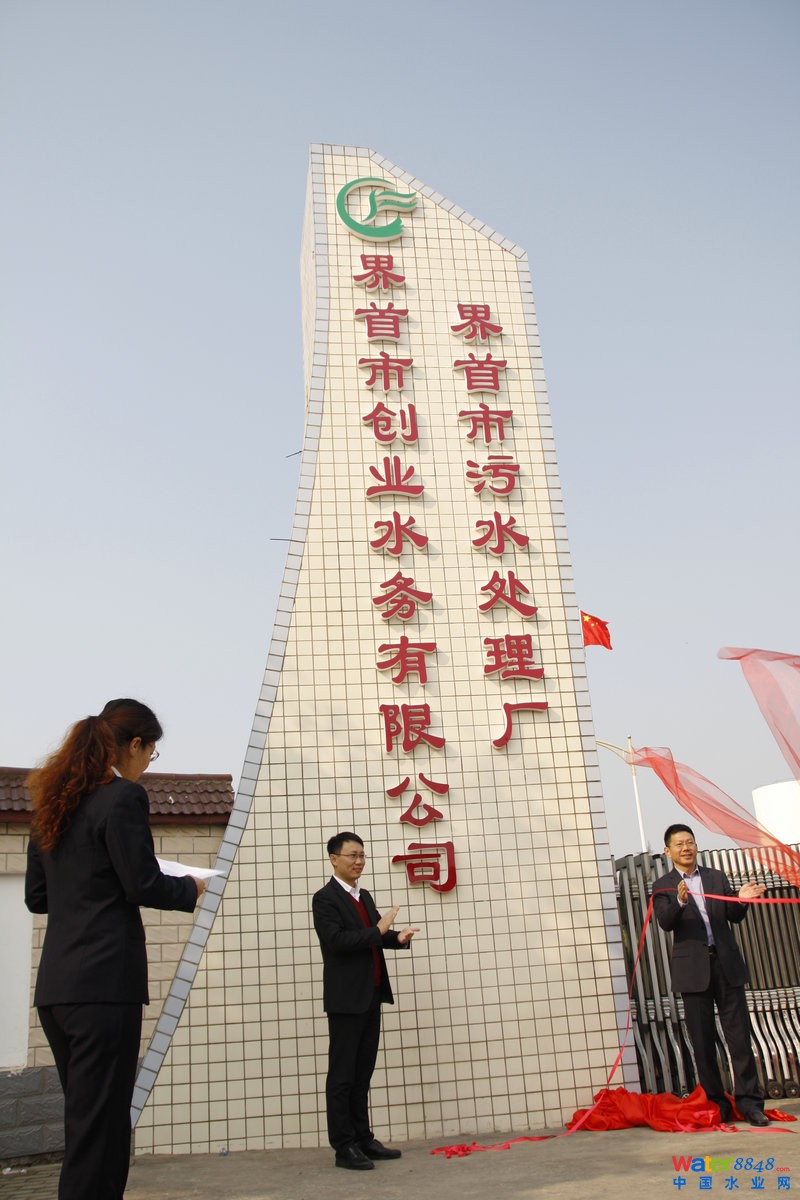 市委副主記、市長何逢陽和天津創(chuàng)業(yè)環(huán)保股份有限公司華中地區(qū)總經(jīng)理周敬東共同為界首市創(chuàng)業(yè)水務(wù)有限公司的成立進(jìn)行了揭牌。