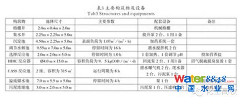 主要構(gòu)筑物及設(shè)備見(jiàn)表3。