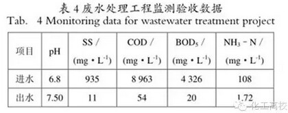 該處理工程于2009年4月通過(guò)當(dāng)?shù)?span id="va7tlrqczop" class="hrefStyle" style="padding: 0px; margin: 0px;">環(huán)保部門的監(jiān)測(cè)驗(yàn)收,實(shí)測(cè)結(jié)果見(jiàn)表4(3次實(shí)測(cè)值的平均值)。