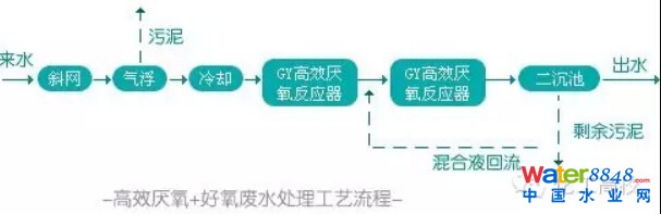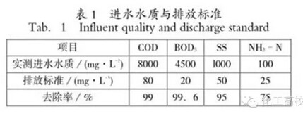 從實(shí)測(cè)進(jìn)水水質(zhì)看,其BOD5/COD>0.5,屬生化性較好的有機(jī)廢水,宜采用生化工藝處理。由于綜合廢水的BOD5遠(yuǎn)大于l000 mg/L,故選用厭氧處理技術(shù)是經(jīng)濟(jì)合理的。