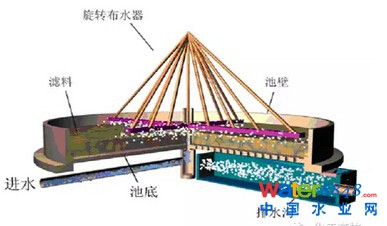 CASS工藝是把SBR的反應(yīng)池沿長(zhǎng)度方向分為兩部分,前部為生物反應(yīng)區(qū)(預(yù)反應(yīng)區(qū)),后部為主反應(yīng)區(qū),在主反應(yīng)區(qū)后部安裝了可升降的潷水裝置,曝氣、沉淀等在同一池內(nèi)周期循環(huán)運(yùn)行,省去了常規(guī)活性污泥法的二沉池和污泥回流裝置。