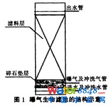 濾料采用沸石填料,比表面積5. 5 ~ 7. 8 ×104 cm2 /g,填裝高度2. 5 m。