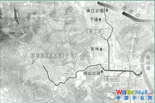 6.新建補(bǔ)水泵站新建金山河河口補(bǔ)水泵站從金山湖抽水至金山河并建設(shè)金山河水閘擋水壅高水面,使水自金山河河口段逆流至分流口,再沿橫江瀝順流至西枝江,以此解決金山河中下游枯水期河水流動(dòng)性問(wèn)題。