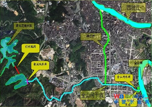 惠州市金山河發(fā)源于惠州西南面的立新村激流坑水塘,位于東江流域中下游的西枝江左岸。干流自西向東總長(zhǎng)約7km,流入金山湖后匯入西枝江;從干流中游自南向北分出支流稱橫江瀝,總長(zhǎng)約3.4km,流入西枝江。金山河流經(jīng)惠州主城區(qū),是惠州市中心區(qū)洪水的主要下泄通道,也是市中心區(qū)工業(yè)、生活污水的受納水體。