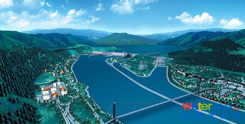 【三期工程】(2004~2009年)三期工程在二期工程的導流明渠截流后就開始建設,工期為6年。修建三期碾壓混凝土圍堰,攔斷導流明渠。水庫蓄水至135m高程。左岸電站及永久船閘開始投入運行。三期圍堰與混凝土縱向圍堰形成三期基坑,基坑內(nèi)修建右岸大壩和電站。三期導流期間,江水經(jīng)由泄洪壩段的永久深孔和22個臨時導流底孔下泄,船舶經(jīng)雙線五級船閘通行。2006年5月20日,三峽大壩主體部分完工;2009年年底全部完工!緢D為】三峽水利樞紐工程三維效果圖。