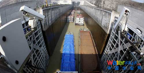 三峽水利樞紐工程雙線5級船閘投入運行,大型船隊進入船閘