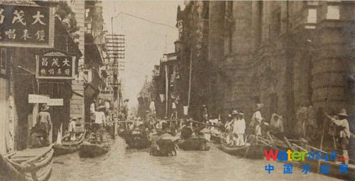 洪水,每次特大洪水時,宜昌以下的長江荊州河段(荊江)都要采取分洪措施,淹沒鄉(xiāng)村和農(nóng)田,以保障武漢的安全。在三峽工程建成后形成的水庫,正常蓄水位高程175m,設計預留的防洪庫容為221.5億m3,其巨大的庫容量所提供的調(diào)蓄能力將能使下游荊江地區(qū)抵御百年一遇的特大洪水,可使江漢平原1500萬人口和150萬公頃耕地免受洪水威脅,在遭遇特大洪水時可避免發(fā)生大量人口傷亡的毀滅性災害,也有助于洞庭湖的治理和荊江堤防的全面修補。三峽水利樞紐最大泄洪能力為116 110 m3/s,可削減的洪峰流量達27 000~33 000 m3/s,屬世界水利工程之最。1931年的長江洪水,受災面積達13萬km2,淹沒農(nóng)田339萬公頃,被淹房屋180萬間,受災民眾2 855萬人,被淹死亡者達14.5萬人,估計損失13.45億銀元【圖為】1931年7月以后,武漢三鎮(zhèn)雨水連綿,長江水位逐日增高,而當局又疏于防范,終致漢口城區(qū)被江水淹沒,人員財產(chǎn)損失極其慘重。照片紀錄了武漢被江水淹沒街道的實景。