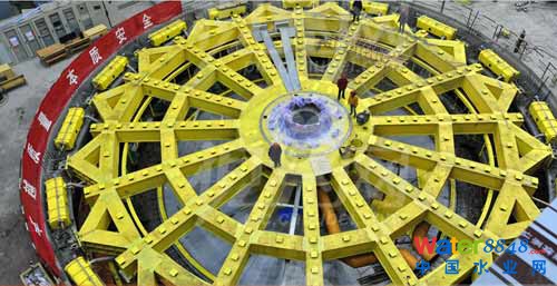 三峽水利樞紐工程水輪機蝸殼安裝施工場景