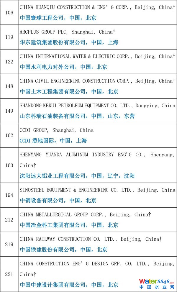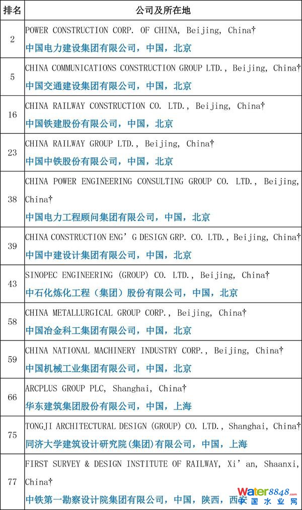 (名單來(lái)源:ENR,由中國(guó)勘察設(shè)計(jì)雜志翻譯整理;歡迎轉(zhuǎn)載,轉(zhuǎn)載請(qǐng)注明出處)