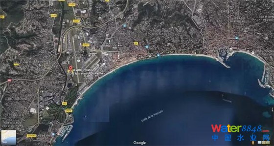 今天要介紹的這座污水廠位于法國(guó)因其電影節(jié)而出名的小城戛納(Cannes)旁邊的一個(gè)叫Mandelieu-la-Napoule的小地方。谷歌地圖顯示,污水廠對(duì)出就是一片藍(lán)藍(lán)的海,讓人無(wú)限向往——在那當(dāng)個(gè)污水廠工人,是一件多么幸福的事情啊。