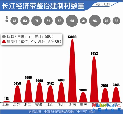 在長江經濟帶地區(qū),包括三峽庫區(qū)及其上游和鄱陽湖、洞庭湖、撫仙湖、洱海等重要飲用水水源地,以及145個水質需改善控制單元范圍內的村莊,涉及580個縣(市、區(qū))5.05萬個建制村,約占全國整治任務的36%。