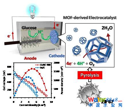在環(huán)境和能源問(wèn)題日益嚴(yán)峻的今天,從廢物中回收清潔能源是實(shí)現(xiàn)人類社會(huì)可持續(xù)發(fā)展的重要途徑。微生物燃料電池(MFC)能夠在降解水中有機(jī)污染物的同時(shí)發(fā)電,在實(shí)現(xiàn)廢水處理可持續(xù)發(fā)展方面有著十分廣闊的前景,是目前國(guó)內(nèi)外研究的熱點(diǎn)。目前,陰極催化劑是限制微生物燃料電池發(fā)展的一個(gè)重要瓶頸。為了克服傳統(tǒng)顆粒態(tài)貴金屬催化劑效率低、造價(jià)高、易中毒等缺陷,我校研究人員使用金屬有機(jī)框架作為前驅(qū)體構(gòu)筑具有三維多級(jí)孔結(jié)構(gòu)催化劑。該催化劑特殊的孔結(jié)構(gòu)能夠強(qiáng)化氧氣和質(zhì)子向三相界面的輸運(yùn),使其在“水淹”狀態(tài)下不會(huì)像鉑碳催化劑那樣發(fā)生顆粒團(tuán)聚和粘附,由于不使用貴金屬,造價(jià)大大降低。該催化劑能夠在微生物燃料電池中產(chǎn)生比傳統(tǒng)鉑碳催化劑高近40%的功率密度,穩(wěn)定性也大幅度提高。該研究為定向設(shè)計(jì)高效、廉價(jià)的微生物燃料電池陰極催化劑提供了新的思路和方法。