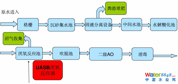 1、(牲畜)原水進入污水處理站的處理工藝