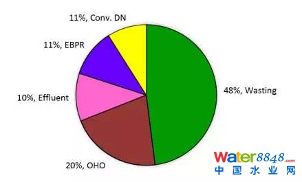 COD的物料平衡分析顯示用于EPBR的碳跟用于異養(yǎng)反硝化的碳量相同,原因是自養(yǎng)型PN/A的轉(zhuǎn)化。與傳統(tǒng)的生物脫氮工藝相比,主流PN/A的碳源需求大大降低,并可能實現(xiàn)高效的EBPR。