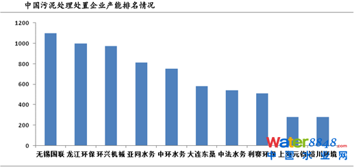 在建項(xiàng)目一定程度上可以反映出污泥處理處置市場未來競爭格局的變化趨勢,通過對市場化項(xiàng)目進(jìn)行不完全統(tǒng)計(jì)分析,江蘇綠威和中法水務(wù)的污泥投資運(yùn)營類在建項(xiàng)目均達(dá)到500噸/日,位居榜首。啟迪桑德、無錫國聯(lián)、北控水務(wù)的在建項(xiàng)目亦較高,進(jìn)入前五名的行列。值得一提的是這五家企業(yè)處理工藝均有所不同:江蘇綠威的在建項(xiàng)目處理工藝為污泥焚燒發(fā)電,中法水務(wù)為污泥干化項(xiàng)目,啟迪桑德主要為電滲透污泥干化,北控水務(wù)為高壓板框工藝,無錫國聯(lián)為深度脫水焚燒。這也體現(xiàn)了對于污泥企業(yè)而言,企業(yè)特有的技術(shù)將是其強(qiáng)有力的競爭力。