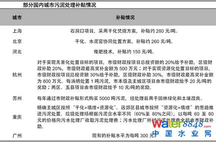 目前國內(nèi)已經(jīng)有部分城市對污泥處理處置給予補(bǔ)貼,由于處理方案不同等因素造成標(biāo)準(zhǔn)不一,污泥處理產(chǎn)業(yè)很難自己盈利,運(yùn)轉(zhuǎn)嚴(yán)重依靠政府補(bǔ)貼。同時(shí),補(bǔ)貼覆蓋范圍明顯不足。