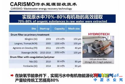 第一個(gè)新技術(shù)是“CARISMO”污水能源回收技術(shù),該技術(shù)能實(shí)現(xiàn)污水之中70%-80%有機(jī)物的高效提取,并將提取的有機(jī)物質(zhì)轉(zhuǎn)到厭氧消化的環(huán)節(jié),從而實(shí)現(xiàn)污水之中有機(jī)物能源化的利用,沼氣的產(chǎn)量提升80%。