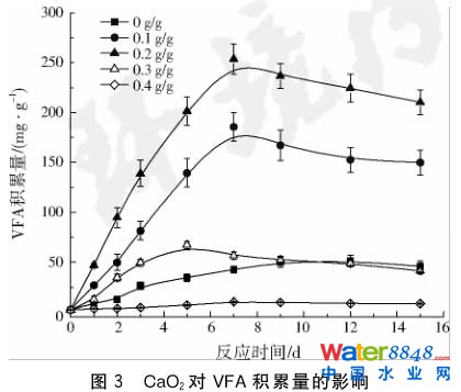 CaO2對(duì)污泥厭氧消化性能的影響  適量的CaO2能夠促進(jìn)污泥的水解和酸化過(guò)程,使得VFA大量積累