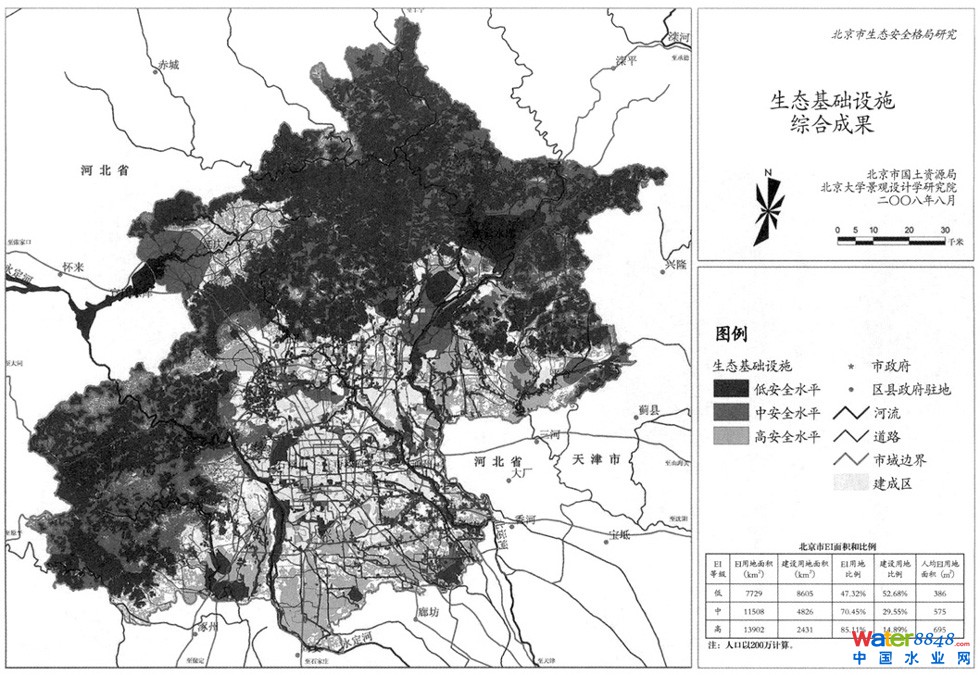 宏觀的區(qū)域海綿系統(tǒng)規(guī)劃:北京市域范圍的生態(tài)基礎(chǔ)設(shè)施,以水過程和水安全為核心,用于綜合解決雨洪調(diào)節(jié)、生物保護(hù)、文化遺產(chǎn)及生態(tài)休憩。