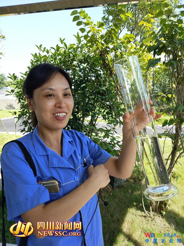 又臟又臭的污水經(jīng)過一道一道的工序,顏色慢慢由濁變清。在污水處理出水口,工作人員拿一個空瓶子,裝著處理后的“污水”給記者看,出水水質(zhì)清澈透明,猶如純凈水,符合國家(GB18918-2002)一級A類標(biāo)準(zhǔn)。