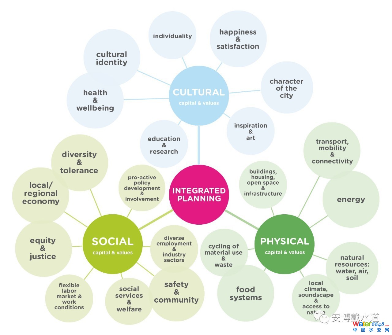 整體規(guī)劃(Integrated Planning)由一系列相關(guān)聯(lián)的活動(dòng)構(gòu)成,旨在持續(xù)改善一個(gè)城市或一個(gè)區(qū)域的經(jīng)濟(jì)、物資、社會(huì)及環(huán)境條件。在總體規(guī)劃過(guò)程中,所有的政策和項(xiàng)目都需進(jìn)行統(tǒng)籌管理。
