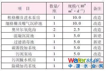 濟源市城市污水處理廠一期工程設(shè)計規(guī)模為5×104m3/d,采用奧貝爾氧化溝工藝,設(shè)計出水水質(zhì)執(zhí)行《城鎮(zhèn)污水處理廠污染物排放標準》(GB 18918—2002)一級B標準,處理后尾水約3.5×104m3/d作為循環(huán)冷卻水回用于沁北電廠。根據(jù)要求,該污水廠出水標準需提高到一級A標準。